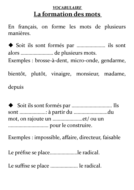 Formation Mots Leçon Et Exos
