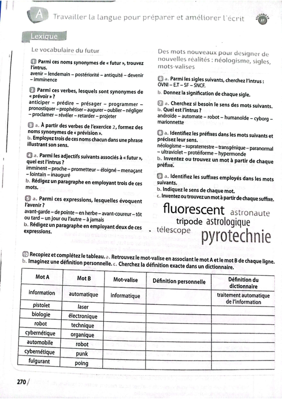 Exercices 3 et 4 de "j'apprends des mots pour parler du progrès" et exercices 8,9 et 10 de "travailler la langue.."