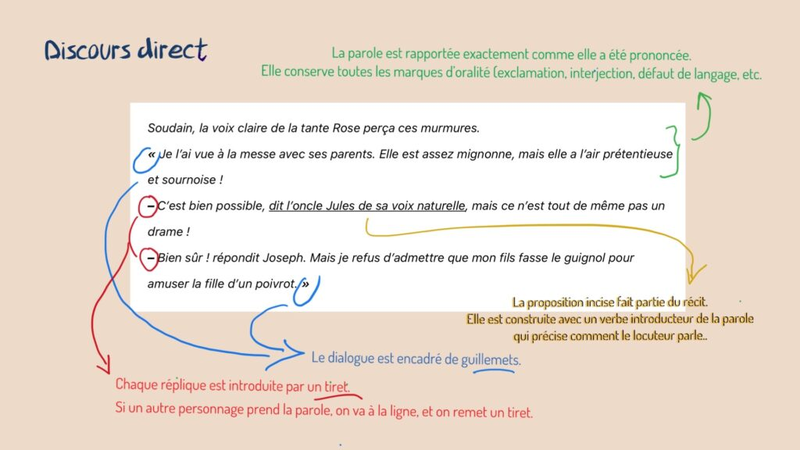 Phrases au discours direct / indirect (verbe introducteur au présent)